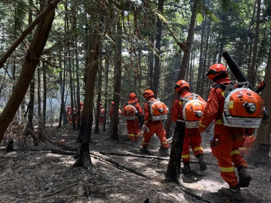 8月28日3時(shí)20分,廣安市華鎣市高興鎮(zhèn)李子椏村發(fā)現(xiàn)一起森林火災(zāi)。災(zāi)情就是命令,四川省森林消防總隊(duì)立即前指帶涼山支隊(duì)、特勤大隊(duì)、應(yīng)急通信與車(chē)輛勤務(wù)大隊(duì)共222人34車(chē)緊急出動(dòng),前往廣安華鎣市火場(chǎng)參與撲救。 同時(shí)還調(diào)度消防救援總隊(duì)242人62車(chē),華鎣、前鋒、鄰水專(zhuān)業(yè)隊(duì)共52人,藍(lán)天救援隊(duì)57人,新興救援隊(duì)22人,礦山救護(hù)隊(duì)17人,民兵542人參與撲救。南方航空護(hù)林總站西昌站1架米-171、成都站1架卡-32直升機(jī)前往火場(chǎng)進(jìn)行火場(chǎng)勘察和吊桶作業(yè)。 抵達(dá)火場(chǎng)后,隊(duì)伍立即調(diào)動(dòng)無(wú)人機(jī)對(duì)火場(chǎng)進(jìn)行全方位勘察。火場(chǎng)西線(xiàn)南段至南線(xiàn)至東線(xiàn)有約3公里斷續(xù)火線(xiàn),為穩(wěn)進(jìn)地表火,主要向東北方向蔓延?;饒?chǎng)為山地地形,植被以松樹(shù)和雜灌為主,東線(xiàn)主山脈坡度約60—70度。 按照現(xiàn)場(chǎng)聯(lián)合指揮部的作戰(zhàn)意圖決定采取“打隔結(jié)合、兩翼對(duì)進(jìn)、鉗形夾擊”戰(zhàn)術(shù)向東追殲和圍堵火頭。總隊(duì)涼山支隊(duì)從火場(chǎng)北線(xiàn)打開(kāi)突破口后突破火線(xiàn),向東撲打與特勤大隊(duì)匯合;特勤大隊(duì)從火場(chǎng)南線(xiàn)西段突破火線(xiàn),向東撲打,與涼山支隊(duì)在東線(xiàn)匯合;地方專(zhuān)業(yè)撲火隊(duì)隨涼山支隊(duì)直屬大隊(duì)從火場(chǎng)北線(xiàn)突破,向西南方向撲打,與藍(lán)天救援隊(duì)在西線(xiàn)匯合。藍(lán)天救援隊(duì)及配屬民兵隨特勤大隊(duì)從火場(chǎng)南線(xiàn)西段突破火線(xiàn),向北撲打,與地方專(zhuān)業(yè)撲火隊(duì)在西線(xiàn)匯合;至此形成全線(xiàn)合圍。同時(shí),11臺(tái)挖掘機(jī)在火場(chǎng)東側(cè)山脊一線(xiàn)開(kāi)設(shè)防火隔離帶,阻隔火頭向東蔓延,全地形大功率水泵車(chē)在隔離帶周?chē)闹脖贿M(jìn)行增濕。 8月28日16時(shí),火場(chǎng)東線(xiàn)、西線(xiàn)、北線(xiàn)已無(wú)明火,僅火燒跡地內(nèi)有部分煙點(diǎn);南線(xiàn)東段至東線(xiàn)中段目測(cè)有約1.5公里斷續(xù)火線(xiàn),伴有間歇性樹(shù)冠火,線(xiàn)上有多處濃煙,山勢(shì)陡峭植被茂密,海拔400至1150米,有多處斷崖,給撲救工作增添不小難度。 20時(shí)30分,火場(chǎng)全線(xiàn)已無(wú)明顯煙點(diǎn)火點(diǎn),但無(wú)人機(jī)熱成像勘察顯示火燒跡地內(nèi)有較多散狀分布的熱點(diǎn),疑似未撲滅的地下火。 8月29日5時(shí),各任務(wù)隊(duì)伍按照昨日既定部署,從宿營(yíng)地向各自任務(wù)區(qū)摩托化機(jī)動(dòng),對(duì)火場(chǎng)全線(xiàn)進(jìn)行縱深清理,火場(chǎng)正進(jìn)入看守階段。同時(shí),廣安市氣象部門(mén)已經(jīng)做好人工增雨準(zhǔn)備,已備作業(yè)車(chē)2臺(tái),人工增雨彈24枚。 8月29日9時(shí)許,四川省廣安華鎣市高興鎮(zhèn)李子椏村境內(nèi)突發(fā)的森林火災(zāi)已撲滅,火場(chǎng)進(jìn)入縱深清理、看守階段,確?;饒?chǎng)實(shí)現(xiàn)三無(wú)。(徐瑞豐 付小華)