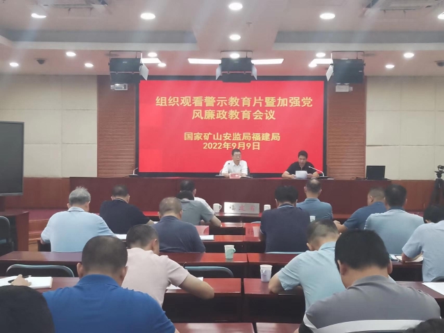 為增強黨員干部廉潔從政意識,用反面典型警示教育全局黨員干部,強化紀律意識,持之以恒落實中央八項規(guī)定及其實施細則精神,國家礦山安監(jiān)局福建局于9月9日組織全局黨員干部集中觀看違紀違法警示教育片,開展節(jié)前黨風(fēng)廉政專題教育。