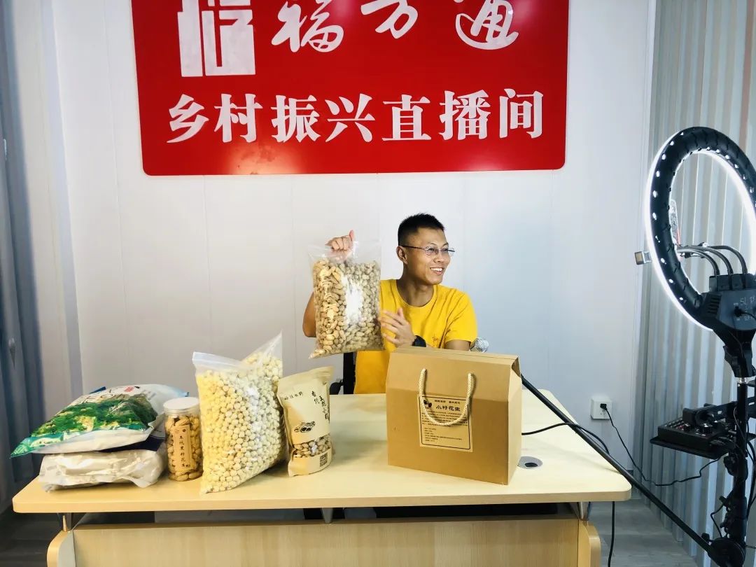 為加快補齊農(nóng)村短板,謀劃實施民生工程,范鐘敏組織干部下沉至項目一線,全力推進(jìn)王坑村污水管網(wǎng)改造、進(jìn)村道路拓寬、弱電桿線下地等民生工程,并配套建設(shè)“鄉(xiāng)愁墻繪”“荷塘彩虹步道”等設(shè)施,精準(zhǔn)開發(fā)集農(nóng)業(yè)體驗、餐飲休閑、研學(xué)娛樂、周末親子游為一體的鄉(xiāng)村農(nóng)旅項目,讓王坑村逐步由一個鮮為人知的偏僻小鄉(xiāng)村蝶變?yōu)闃O具潛力的鄉(xiāng)村休閑旅游“網(wǎng)紅村”。 親力親為的“帶貨書記” “歡迎大家走進(jìn)直播間,我手里拿的是在我們王坑村特有的富硒紫色土壤里種出來的小籽花生,結(jié)實飽滿、口感香郁?!痹谕蹩哟宀扛Hf通鄉(xiāng)村振興帶貨直播間內(nèi),范鐘敏化身“帶貨主播”,正在向網(wǎng)友們介紹王坑農(nóng)特產(chǎn)品。