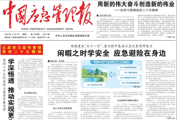 中國(guó)應(yīng)急管理報(bào)頭版頭條刊發(fā)我省“五個(gè)一百”安全應(yīng)急保障提升工程