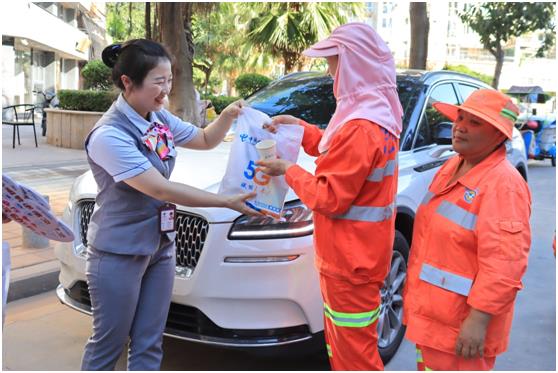 愛心大使為環(huán)衛(wèi)工人提供礦泉水