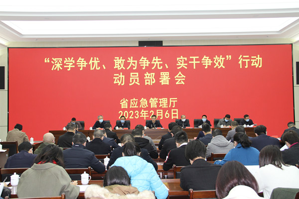 2月6日,省應(yīng)急管理廳召開(kāi)“深學(xué)爭(zhēng)優(yōu)、敢為爭(zhēng)先、實(shí)干爭(zhēng)效”行動(dòng)動(dòng)員部署會(huì),廳黨委書(shū)記、廳長(zhǎng)伍斌作動(dòng)員部署,廳機(jī)關(guān)各處室、駐廳紀(jì)檢監(jiān)察組全體干部和直屬單位中層以上干部參加會(huì)議。 會(huì)議指出,省委部署實(shí)施“深學(xué)爭(zhēng)優(yōu)、敢為爭(zhēng)先、實(shí)干爭(zhēng)效”行動(dòng),是繼開(kāi)展“再學(xué)習(xí)、再調(diào)研、再落實(shí)”活動(dòng),實(shí)施“提高效率、提升效能、提增效益”行動(dòng)后,再一次開(kāi)展的年度性主題活動(dòng)。全廳各級(jí)黨組織和黨員干部要按照省委部署安排,深入實(shí)施“深學(xué)爭(zhēng)優(yōu)、敢為爭(zhēng)先、實(shí)干爭(zhēng)效”行動(dòng),把自己擺進(jìn)去、把職責(zé)擺進(jìn)去、把工作擺進(jìn)去,不斷增強(qiáng)爭(zhēng)優(yōu)、爭(zhēng)先、爭(zhēng)效的高度自覺(jué),進(jìn)一步強(qiáng)信心、鼓干勁、提精神,扎扎實(shí)實(shí)做好應(yīng)急管理各項(xiàng)工作,以實(shí)際行動(dòng)堅(jiān)定擁護(hù)“兩個(gè)確立”、堅(jiān)決做到“兩個(gè)維護(hù)”。 會(huì)議強(qiáng)調(diào),要以更高的政治站位,大力實(shí)施“深學(xué)爭(zhēng)優(yōu)、敢為爭(zhēng)先、實(shí)干爭(zhēng)效”行動(dòng)。一是深學(xué)爭(zhēng)優(yōu),爭(zhēng)當(dāng)理論武裝的“優(yōu)等生”。要在全面學(xué)習(xí)、全面把握、全面落實(shí)上下功夫,明確學(xué)習(xí)重點(diǎn)、豐富學(xué)習(xí)方式、堅(jiān)持學(xué)以致用,做到全廳成為貫徹落實(shí)習(xí)近平總書(shū)記重要指示的排頭兵,廳領(lǐng)導(dǎo)成為深學(xué)細(xì)照篤行的表率,黨員干部成為理論武裝的標(biāo)桿。二是敢為爭(zhēng)先,爭(zhēng)當(dāng)敢拼會(huì)贏的“先行者”。要在發(fā)揚(yáng)斗爭(zhēng)精神上下功夫,爭(zhēng)第一、創(chuàng)唯一、樹(shù)標(biāo)桿,力爭(zhēng)安全生產(chǎn)和消防工作考核巡查、安全生產(chǎn)指標(biāo)、業(yè)務(wù)工作走在全國(guó)前列,機(jī)關(guān)黨建工作走在省直機(jī)關(guān)前列,績(jī)效考評(píng)工作走在省直監(jiān)管與服務(wù)類(lèi)政府工作部門(mén)優(yōu)秀等次前列。三是實(shí)干爭(zhēng)效,爭(zhēng)當(dāng)務(wù)求實(shí)效的“實(shí)干家”。要從強(qiáng)化績(jī)效考評(píng)入手,解決工作標(biāo)準(zhǔn)不高問(wèn)題;從說(shuō)辦就辦、急事急辦、特事特辦入手,解決慢熱拖沓問(wèn)題;從強(qiáng)化責(zé)任心、增強(qiáng)敏感性、提升敬畏感來(lái)突破,解決“溫吞水”問(wèn)題;從明職責(zé)、重協(xié)調(diào)、強(qiáng)落實(shí)來(lái)攻堅(jiān),解決推諉扯皮問(wèn)題。 會(huì)議強(qiáng)調(diào),要以更強(qiáng)的政治擔(dān)當(dāng),認(rèn)真落實(shí)省委省政府決策部署,切實(shí)提升應(yīng)急管理工作質(zhì)量與效能。一是提升政治站位,堅(jiān)持統(tǒng)籌發(fā)展和安全,堅(jiān)持依法治安、科技興安、人才強(qiáng)安,繃緊防范化解重大安全風(fēng)險(xiǎn)之弦,堅(jiān)決防范遏制重特大事故發(fā)生。二是壓實(shí)安全責(zé)任,擰緊層層跟進(jìn)的責(zé)任鏈條,完善科學(xué)精準(zhǔn)的考評(píng)體系,強(qiáng)化應(yīng)對(duì)有力的動(dòng)態(tài)監(jiān)管,落實(shí)賞罰分明的問(wèn)效機(jī)制。三是創(chuàng)新制度機(jī)制,強(qiáng)化更嚴(yán)的整治機(jī)制,完善更優(yōu)的法治路徑,建立更順的聯(lián)動(dòng)系統(tǒng),實(shí)施更強(qiáng)的基層應(yīng)急管理體系和能力建設(shè),構(gòu)建大安全大應(yīng)急工作格局。四是強(qiáng)化數(shù)字應(yīng)急,建立協(xié)同聯(lián)動(dòng)的數(shù)字應(yīng)急綜合應(yīng)用平臺(tái),開(kāi)發(fā)精細(xì)專(zhuān)業(yè)的應(yīng)用系統(tǒng),提高科學(xué)精準(zhǔn)的大數(shù)據(jù)應(yīng)用分析水平,建立實(shí)用有效的安全宣教體系,持續(xù)提升應(yīng)急管理科學(xué)化水平。五是增強(qiáng)素質(zhì)能力,提振精氣神,增強(qiáng)責(zé)任心,提升硬本領(lǐng),打造鐵作風(fēng),打造忠誠(chéng)干凈擔(dān)當(dāng)?shù)膽?yīng)急管理鐵軍。 會(huì)議要求,要強(qiáng)化組織領(lǐng)導(dǎo),形成全廳上下一盤(pán)棋,認(rèn)真履職、通力協(xié)作、培樹(shù)典型,推進(jìn)各項(xiàng)工作任務(wù)高質(zhì)量完成。要強(qiáng)化跟進(jìn)實(shí)施,健全“月度推進(jìn)、季度點(diǎn)評(píng)、半年分析、年終總結(jié)”推進(jìn)機(jī)制,不斷夯實(shí)工作基礎(chǔ)。要強(qiáng)化重要抓手,以開(kāi)展“安全應(yīng)急效能年”提升活動(dòng)為抓手,以“三個(gè)爭(zhēng)當(dāng)”為目標(biāo),以“七個(gè)提升、七個(gè)突出”為重點(diǎn),以抓實(shí)5項(xiàng)重點(diǎn)工作、14項(xiàng)重要任務(wù)和20項(xiàng)重要事項(xiàng)為切入點(diǎn),推動(dòng)應(yīng)急管理工作提質(zhì)增效。要強(qiáng)化業(yè)績(jī)考核,加強(qiáng)績(jī)效考評(píng),加強(qiáng)跟蹤推進(jìn),加強(qiáng)結(jié)果考核,堅(jiān)持正確用人導(dǎo)向,為擔(dān)當(dāng)者擔(dān)當(dāng)、為負(fù)責(zé)者負(fù)責(zé)、為干事者撐腰。要強(qiáng)化宣傳引導(dǎo),廣泛宣傳實(shí)施行動(dòng)的經(jī
