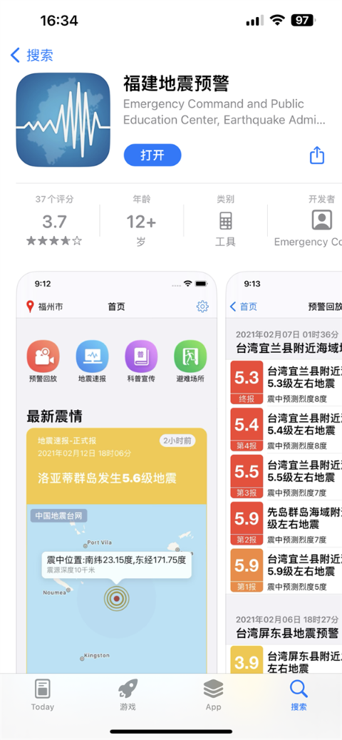 “福建地震預(yù)警”客戶端下載頁。來源:應(yīng)用商店 “雙端”覆蓋線上線下 實(shí)現(xiàn)“科普+預(yù)警” 2018年,由福建省地震局自主研發(fā)的“福建地震預(yù)警”客戶端正式上線,利用高效可靠的消息傳遞機(jī)制,實(shí)時接收福建省地震局推送的閩臺地區(qū)地震預(yù)警和全球地震速報信息,同時還提供地震科普和避難場所查詢等功能,目前可在福建省地震局官網(wǎng)和各大移動端應(yīng)用商店下載。 在省內(nèi)各大公共場所,特別是中小學(xué)校,福建省已布設(shè)了1.8萬余臺地震預(yù)警信息發(fā)布終端,利用電子屏與顯示燈告知地震相關(guān)信息。“終端上有4種顏色的顯示燈,紅橙黃藍(lán)四色表示不同的地震強(qiáng)度和危害程度,更加直觀醒目?!崩钴娊忉?。 “根據(jù)當(dāng)前的定位,客戶端與終端不僅能夠告知地震信息,還能夠預(yù)估破壞程度,以便及時采取必要的措施。”李軍介紹,“在沒有地震發(fā)生的時候,我們利用客戶端和終端對地震知識進(jìn)行科普宣傳?!贝送?,省地震局未來還將進(jìn)一步開放數(shù)據(jù)接口,為更多的人提供地震預(yù)警和科普服務(wù)。