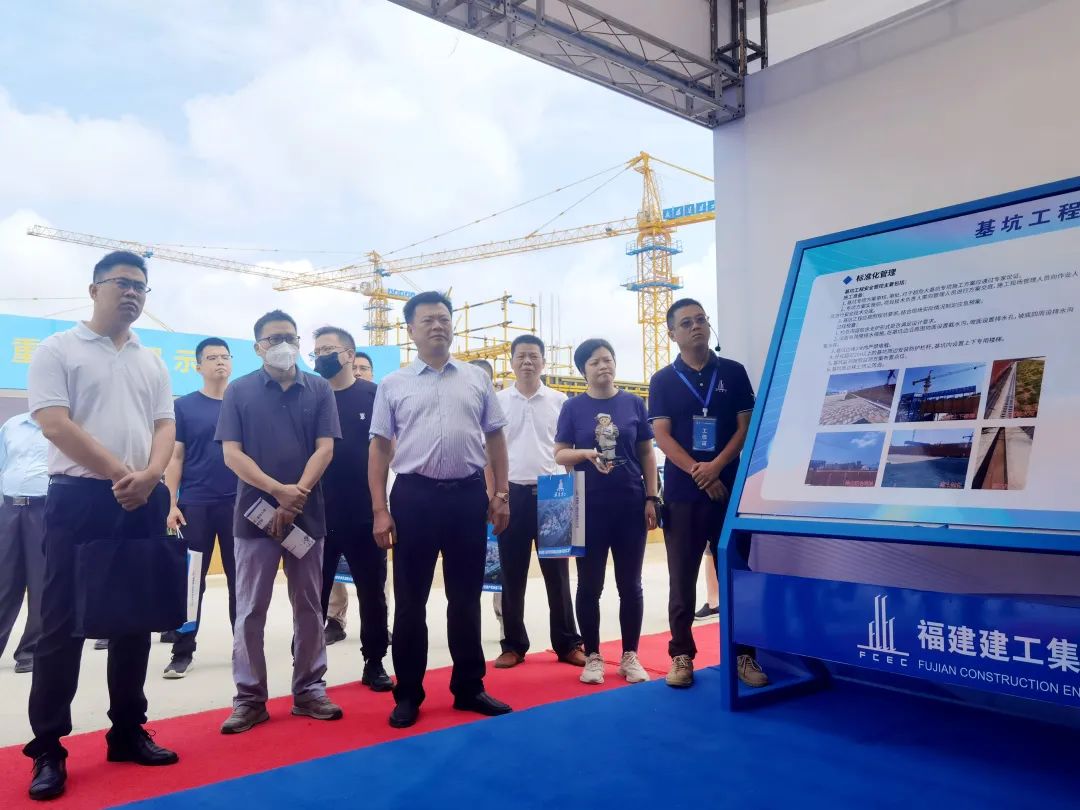 為進(jìn)一步推進(jìn)建設(shè)工程高新技術(shù)的創(chuàng)新應(yīng)用和安全生產(chǎn)工作的貫徹落實(shí),充分發(fā)揮標(biāo)準(zhǔn)化示范觀摩工地的示范引領(lǐng)作用,提升房建市政工程施工安全管理水平,6月12日上午,由福州市城鄉(xiāng)建設(shè)局主辦,福建建工集團(tuán)承辦的福州市危大工程安全管控觀摩會(huì)在長(zhǎng)樂東卓名郡正式啟動(dòng)。 工程公司黨委書記、董事長(zhǎng)陳書明,福州市城鄉(xiāng)建設(shè)局質(zhì)量安全監(jiān)管處處長(zhǎng)鐘玲敏,各縣(市)區(qū)建設(shè)局分管領(lǐng)導(dǎo)、工程科(辦、股)、城建科(辦、股)負(fù)責(zé)人,工程質(zhì)量安全監(jiān)督機(jī)構(gòu)負(fù)責(zé)人,福州市轄區(qū)內(nèi)房地產(chǎn)開發(fā)企業(yè)、建設(shè)(代建)單位以及施工企業(yè)、監(jiān)理企業(yè)等一同參加本次觀摩活動(dòng)。