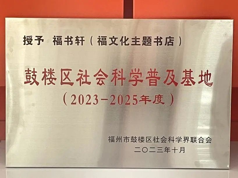 近日,福州市鼓樓區(qū)社會科學界聯(lián)合會授予福書軒(福文化主題書店)“2023-2025年度鼓樓區(qū)社會科學普及基地”。 福書軒將堅持以習近平新時代中國特色社會主義思想為指導,按照《福州市鼓樓區(qū)社會科學普及基地建設與管理工作制度》要求,結(jié)合自身優(yōu)勢特色,積極開展群眾性、社會性、經(jīng)常性的社會科學普及活動,充分發(fā)揮區(qū)級社會科學普及基地在理論武裝、科學普及、文化傳承中的示范引領作用,為推動鼓樓區(qū)社會科學普及大眾化、社會化、常態(tài)化作出積極貢獻。 |