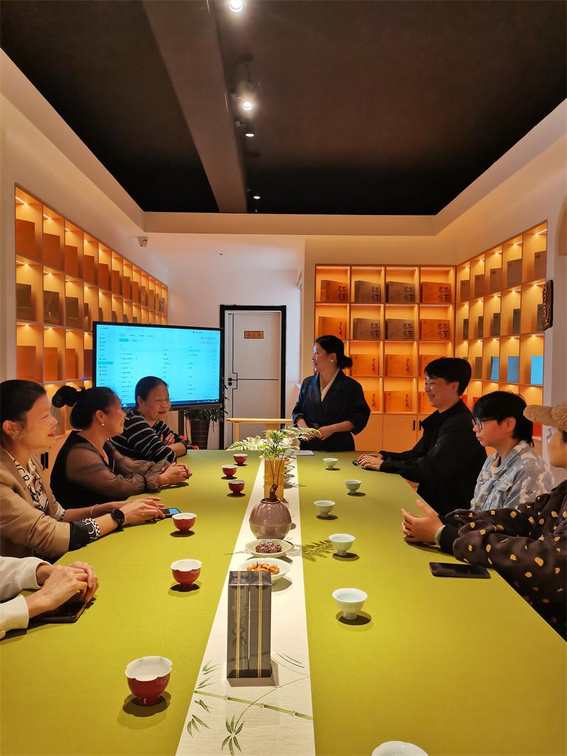 王鐿霏(中)常在自己的門(mén)店里,與愛(ài)茶的姐妹一起品茗、談傳統(tǒng)文化 被訪對(duì)象供圖 “很多人覺(jué)得茶就是高端的,其實(shí)并不是。”王鐿霏談起了自己當(dāng)初堅(jiān)持盤(pán)下茶山,就是為了省去中間環(huán)節(jié),把利潤(rùn)降下來(lái),也希望改變?nèi)藗儭疤靸r(jià)茶”的觀念?!白尭鄲?ài)好喝茶人,可以喝上一杯純正的茶,這是我的初心?!边@是本著這顆初心,王鐿霏將客戶定位在普通工薪階層,讓平價(jià)茶走進(jìn)千家萬(wàn)戶。 以茶促談 傳統(tǒng)文化浸潤(rùn)家庭 關(guān)注王鐿霏的短視頻,可以發(fā)現(xiàn),在她的視頻中,女性品茶者居多。 “我們注重的是傳統(tǒng)文化。在傳統(tǒng)文化里,女性是一個(gè)家庭的核心?!痹谕蹊O霏看來(lái),一個(gè)女性可以影響三代人,當(dāng)女性開(kāi)始喝茶,進(jìn)而了解茶文化之后,便可以從茶的歷史里了解傳統(tǒng)文化。同時(shí),通過(guò)茶文化的熏陶,可以讓女性自己修身養(yǎng)性,還能帶動(dòng)家人一起,在品茗中修身養(yǎng)性,進(jìn)而讓孩子們了解茶的制作過(guò)程,制作技藝,進(jìn)行傳統(tǒng)文化教育。 王鐿霏不僅是這樣認(rèn)為,也是這樣做的。除了依托其企業(yè)門(mén)店進(jìn)行品茗分享外,她還用茶山為教學(xué)基地,與當(dāng)?shù)貙W(xué)校、幼兒園開(kāi)展深度合作,借助教育資源帶動(dòng)當(dāng)?shù)氐奈幕彤a(chǎn)業(yè)的繁榮。