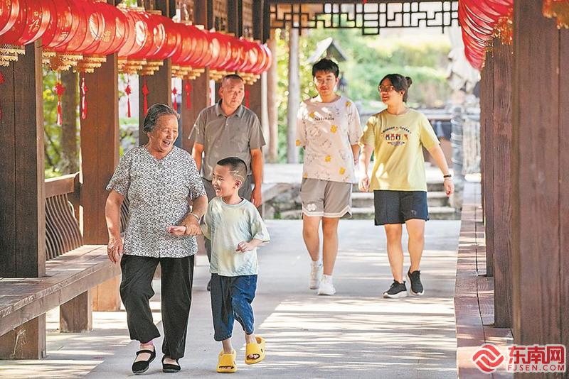 壽寧縣下黨鄉(xiāng),村民在長廊散步休閑。福建日報(bào)記者 王毅 攝