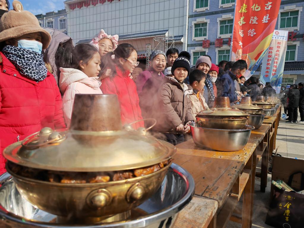 舞臺附近,還有隆德暖鍋、油炸糕餅、罐罐茶等美食飲品免費發(fā)放給觀眾,隆德中藥材、小雜糧、土蜂蜜、醋等農(nóng)特產(chǎn)品也排放整齊供人選購。