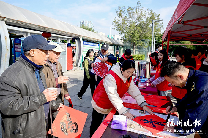 14日上午,在福州火車站北廣場,書法愛好者為乘客寫春聯(lián)。 本次活動由市委文明辦、市國資委、市交通局、福州左海集團、市道運中心指導,福州公交集團主辦。 14日9時許,福州火車站北廣場客流持續(xù)上升。志愿服務站剛搭好,書法愛好者潘志杰、賀建波便忙碌起來,揮毫潑墨寫下飽含吉祥寓意的春聯(lián)和福字貼,過往乘客紛紛前來領取?!白謱懙谜嫫?。我說兩句詞,你能幫忙寫嗎?”一名老年乘客提出要求,潘志杰筆走游龍寫下一副富含春意的對聯(lián),老人滿意而歸。 與此同時,志愿者為乘客送上窗花、蛇形玩偶、雙魚掛件等新春禮物,“愛心茶攤”提供免費熱茶、熱水,為過往乘客以及周邊的保安、保潔等工作人員驅散寒意?!拔覀円堰B續(xù)10年在春運首日開展志愿服務活動,今年首次將活動范圍擴大,除了在福州火車站,還在火車南站、公交仁德站、海峽奧體公交樞紐站等場站開設志愿服務站和‘愛心茶攤’,為更多歸鄉(xiāng)乘客提供服務?!备V莨患瘓F相關負責人介紹。 在公交候車區(qū),也有志愿者忙碌的身影。他們?yōu)椴皇煜ぞ€路走向的乘客指引乘車方向,引導乘客排隊上車,幫忙提拿大件行李。趁著公交車發(fā)車間隙,他們還走進新投用的51路純電動公交車內(nèi),貼窗花、掛燈籠,精心布置新春主題車廂,讓乘客一上車就能感受到濃郁的新春氛圍。 據(jù)了解,今年春運期間,福州公交集團日均發(fā)車約2.5萬趟次,將結合務工流、學生流、旅游流、探親流疊加的客流特點,充分運用智能調(diào)度監(jiān)控系統(tǒng)和大數(shù)據(jù)分析功能,精準投放公交運力資源,針對福州火車站、火車南站、熱門景區(qū)等重點區(qū)域,采取增加營運趟次、延長營運時間、增開區(qū)間車等措施,力爭有效應對階段性客流增長帶來的客運壓力。(記者 劉珺 通訊員 吳夢蓉/文記者 石美祥/攝) |