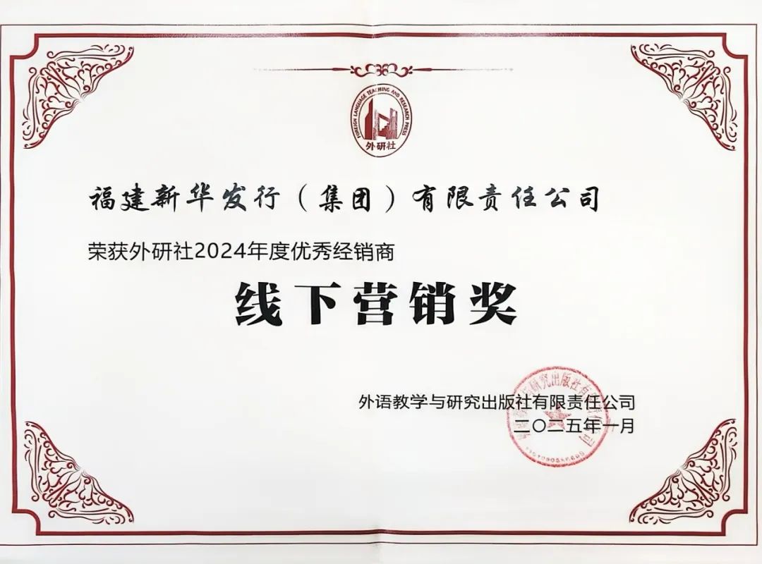 福建新華發(fā)行集團榮獲中國出版集團“2024年度最佳重大文化出版工程推介機構(gòu)”榮譽稱號、榮獲人民教育出版社“感動人教2024卓越合作伙伴”榮譽稱號、榮獲中華書局“銳意進(jìn)取獎”榮譽稱號、榮獲外研社“2024年度優(yōu)秀經(jīng)銷商線下營銷獎”榮譽稱號、榮獲《全國大中專教學(xué)用書匯編》編委會“全國優(yōu)秀教材經(jīng)銷商”榮譽稱號、榮獲圖書館報“2024年度全國優(yōu)秀館配商”榮譽稱號,集團教材發(fā)行中心主任潘明劼榮獲人民教育出版社“感動人教2024教學(xué)資源服務(wù)獎”。 未來,福建新華發(fā)行集團將在福建省委宣傳部和海峽出版發(fā)行集團的領(lǐng)導(dǎo)下,堅持以習(xí)近平新時代中國特色社會主義思想為指導(dǎo),踐行“為讀者找好書,為好書找讀者”宗旨,舉辦更高品質(zhì)、更具影響力的閱讀品牌活動,在全社會大力營造愛讀書、讀好書、善讀書的良好氛圍,為推動全民閱讀、建設(shè)“書香八閩”作出新的更大貢獻(xiàn)。 |