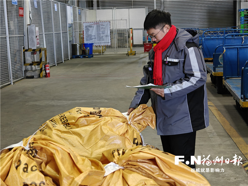 1月28日上午8:40,在福州機(jī)場(chǎng)國(guó)際貨運(yùn)站,王比爾細(xì)致核對(duì)前夜貨運(yùn)保障記錄。作為貨運(yùn)班組長(zhǎng),他需要統(tǒng)籌協(xié)調(diào),在有限時(shí)間內(nèi)完成貨物出入港的全流程。