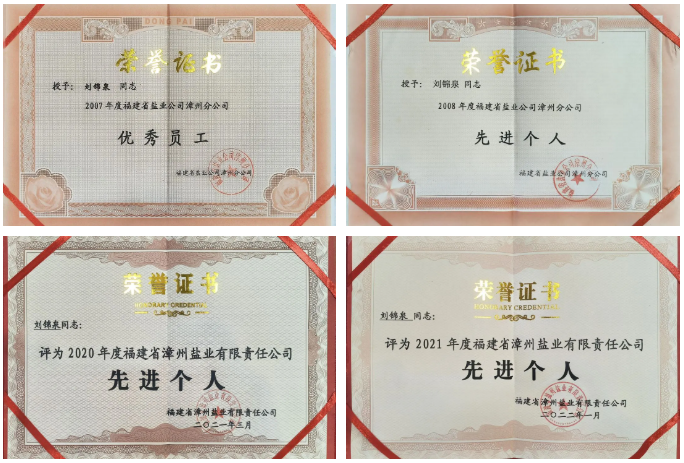 劉錦泉在工作崗位獲得的榮譽(yù)證書 初心如磐:守護(hù)“舌尖安全” 2023年8月,日本核污水排海引發(fā)食鹽市場(chǎng)波動(dòng)。這對(duì)于一名鹽業(yè)客戶經(jīng)理來說,是一場(chǎng)沒有硝煙的戰(zhàn)爭(zhēng)。 “別慌,有國(guó)家在,有我們?cè)?,鹽管夠!”這是劉錦泉對(duì)每一位焦慮的客戶和市民說得最多的一句話。他第一時(shí)間行動(dòng)起來,在微信群、朋友圈轉(zhuǎn)發(fā)官方權(quán)威信息,耐心做好宣傳解釋,用專業(yè)與擔(dān)當(dāng)筑起一道“民心防線”。 憑借多年積累的客情網(wǎng)絡(luò),他提前預(yù)警,迅速協(xié)調(diào)。在最緊張的那三天兩夜里,他幾乎沒有安安穩(wěn)穩(wěn)地睡過一覺。手機(jī)被打得滾燙,一邊是安撫焦急的經(jīng)銷商,了解他們的庫(kù)存和需求;另一邊是高頻次地與配送中心、物流車輛溝通,協(xié)調(diào)運(yùn)力,爭(zhēng)取貨源。一天凌晨,嚴(yán)重缺覺的他仍在親自跟車配送,確保一批緊急調(diào)撥的食鹽能準(zhǔn)時(shí)送達(dá)當(dāng)?shù)刈畲蟮倪B鎖超市。超市經(jīng)理看到他布滿血絲的雙眼,感慨地說:“有你們?cè)?,我們就放心了!?/p> 在那場(chǎng)風(fēng)波中,劉錦泉成功協(xié)調(diào)調(diào)運(yùn)了上百噸小包裝食鹽,他所負(fù)責(zé)的區(qū)域,市場(chǎng)供應(yīng)穩(wěn)定、價(jià)格平穩(wěn),沒有出現(xiàn)一例斷供或漲價(jià)事件。他用實(shí)際行動(dòng),再次守住了自己的“陣地”,守住了“人民的鹽”。 微光成炬:平凡脊梁照亮人間煙火 晚上七點(diǎn),劉錦泉結(jié)束了一天的巡訪,駕車返程。城市燈火漸次亮起,如散落人間的星子。車停穩(wěn),他打開微信工作群,認(rèn)真編輯著當(dāng)天工作日志...... 鹽,依舊潔白如雪;初心,始終堅(jiān)如磐石。 這份初心,來自八十年前烽火中的錚錚鐵骨,也來自此刻平凡崗位上的默默執(zhí)著。它從爺爺?shù)氖种?,傳遞到他的肩上,最終融化在每一粒鹽、每一餐飯里,落在一個(gè)普通福鹽人的脊梁上。這,既是一個(gè)家庭的精神傳承,更是無數(shù)福鹽人融入血脈的共同寫照——那份對(duì)國(guó)計(jì)民生的責(zé)任與擔(dān)當(dāng),無聲,卻足以照亮歲月,共同溫暖八閩大地的人間煙火。 |