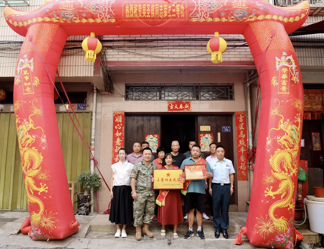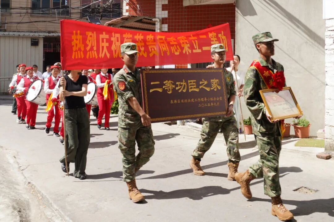 活動(dòng)現(xiàn)場(chǎng),氣氛熱烈,泉港區(qū)人武部部長(zhǎng)何晨凡現(xiàn)場(chǎng)宣讀了蔡茂貴同志二等功喜報(bào),泉港區(qū)政府副區(qū)長(zhǎng)朱添洪鄭重地為蔡茂貴父母佩戴綬帶、送上鮮花,泉港區(qū)委常委、區(qū)人武部政委熊洪向蔡茂貴父母送上立功慰問金。在熱烈的掌聲中,送喜報(bào)隊(duì)伍還為蔡茂貴家屬送上“二等功臣之家”牌匾,黨和政府對(duì)功臣及其家屬的關(guān)懷和敬意,傳遞到現(xiàn)場(chǎng)每個(gè)人的心中,鄰里鄉(xiāng)親們紛紛投來贊許的目光,為這份榮耀感到由衷的自豪。