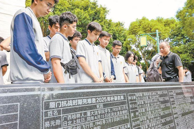 日前,廈門(mén)市中學(xué)生在五通燈塔公園聆聽(tīng)英烈故事,觀看廈門(mén)抗戰(zhàn)時(shí)期死難者名錄碑及2025年補(bǔ)錄名單。(唐光峰 攝) 日前,廈門(mén)市中學(xué)生參觀“永銘在心”廈門(mén)抗日死難者紀(jì)念雕塑及廈門(mén)抗戰(zhàn)時(shí)期死難者名錄碑。(唐光峰 攝) 廈門(mén)籍抗日烈士洪永傳。(圖片來(lái)自《旅菲華僑抗日烈士洪永傳》) 廈門(mén)網(wǎng)訊(廈門(mén)日?qǐng)?bào)記者 趙張昀)日前,廈門(mén)抗戰(zhàn)時(shí)期死難者名錄碑補(bǔ)刻揭碑儀式在五通燈塔公園舉行,此次補(bǔ)錄了116個(gè)廈門(mén)抗戰(zhàn)時(shí)期死難者名字。 截至目前,廈門(mén)抗戰(zhàn)時(shí)期死難者名錄碑上鐫刻的名字已達(dá)1300個(gè),除了部分廈門(mén)平民死難者,還有保衛(wèi)廈門(mén)戰(zhàn)斗犧牲將士301人、廈門(mén)籍在外地抗戰(zhàn)陣亡官兵和壯丁135人、廈門(mén)抗日成仁志士110人、獻(xiàn)身滇緬公路的廈門(mén)籍南僑機(jī)工25人、廈門(mén)籍菲律賓華僑烈士9人,均已勒石留名,以志紀(jì)念。 這些英雄的名字背后都有不同的壯烈故事,他們有的是在阻擊日寇登陸廈門(mén)時(shí)浴血奮戰(zhàn)的罹難軍民;有的是自發(fā)聚集、為國(guó)壯烈捐軀的“血魂團(tuán)”成員;有的是身居南洋卻甘為正義殉國(guó)的廈門(mén)籍華僑子弟……看著碑上的這些名字,我們仿佛看到了當(dāng)年的槍林彈雨中,廈門(mén)的軍士、平民、華僑等以生命捍衛(wèi)祖國(guó)的身影。 這些英烈的故事,值得被銘記、傳揚(yáng)。今天是烈士紀(jì)念日,讓我們一起聽(tīng)一聽(tīng)這些有關(guān)血與火的故事。 堅(jiān)守廈門(mén)的勇士 浴血奮戰(zhàn)阻擊日寇 “人生不過(guò)百年,到頭來(lái)終究一死。你們這樣死去,是得到最神圣的死所,你們的血,染紅了中華民族的歷史!你們的死,必然獲得民族的永生!”1938年5月20日,《南方日?qǐng)?bào)》刊發(fā)了這則名為《贊死守廈門(mén)的勇士》的社論。 一組數(shù)據(jù)顯示,在阻擊日寇登陸廈門(mén)的戰(zhàn)斗中,傷亡、失蹤的廈門(mén)守軍約1000人,絕大多數(shù)都是未成家的青年軍人。 “杜鎮(zhèn)砧,陸軍第75師446團(tuán)上尉軍醫(yī)?!边@個(gè)出現(xiàn)在廈門(mén)抗戰(zhàn)時(shí)期死難者名錄碑2025年補(bǔ)錄名單上的人物,是如何犧牲的?記者在《廈門(mén)海防百年》一書(shū)中,找到了詳盡記述。 1938年5月10日凌晨,在海上蟄伏多時(shí)的日寇軍艦,突然向廈門(mén)島發(fā)炮。當(dāng)時(shí),身在同安的杜鎮(zhèn)砧和通訊班長(zhǎng)王心誠(chéng)接到軍令,立刻啟程回營(yíng)。兩人乘汽車(chē)趕至集美,準(zhǔn)備渡海進(jìn)入高崎時(shí),已經(jīng)拂曉。船老大說(shuō):“你們看,敵機(jī)已經(jīng)飛來(lái),我船一開(kāi),就有被炸沉的危險(xiǎn)。”兩人勸說(shuō)船老大:“抗戰(zhàn)不能怕死?!倍沛?zhèn)砧還說(shuō):“就是死,也要回去殺敵?!贝洗蠛痛ひ闳婚_(kāi)船:“你們?yōu)閲?guó)家不怕死,我們陪你們!”然而,船開(kāi)到一半,便被敵機(jī)發(fā)現(xiàn)炸沉,王心誠(chéng)僥幸游到高崎岸邊,杜鎮(zhèn)砧卻被炮彈炸傷,沉入海中…… 廈門(mén)保衛(wèi)戰(zhàn)持續(xù)3天,除了守軍,英勇獻(xiàn)身的還有武裝警察、保安隊(duì)、壯丁隊(duì)等人員。碑刻上,他們的名字背后都有一段慘烈的搏殺:副營(yíng)長(zhǎng)馬忠喜身中數(shù)彈,仍使盡余力爬到樹(shù)上,居高臨下開(kāi)槍打死幾個(gè)敵人,最后壯烈犧牲;廈門(mén)壯丁隊(duì)大隊(duì)長(zhǎng)程超凡,血戰(zhàn)蓮坂時(shí)犧牲;壯丁中隊(duì)分隊(duì)長(zhǎng)翁振恕,率領(lǐng)鄉(xiāng)民英勇戰(zhàn)死;壯丁隊(duì)成員許大目、楊結(jié),被捕殺害;禾山義勇隊(duì)隊(duì)長(zhǎng)林能隱、副隊(duì)長(zhǎng)曾國(guó)波,奮勇殺敵血灑沙場(chǎng);廈門(mén)社會(huì)訓(xùn)練干部班區(qū)隊(duì)長(zhǎng)翁慶瑜,失血而死…… 青年復(fù)土血魂團(tuán) 平民英雄自發(fā)抗敵 廈門(mén)全島淪陷2個(gè)月后,一群青年船工、印刷工人、建筑工人、攤販,悄悄聚集在鼓浪嶼黃家渡,自發(fā)成立民間抗日組織“廈門(mén)青年復(fù)土血魂團(tuán)”。 這個(gè)被簡(jiǎn)稱(chēng)為“血魂團(tuán)”的組織,成員約有300人。在中山路,他們?cè)跀橙说难燮さ紫律l(fā)愛(ài)國(guó)傳單,激發(fā)社會(huì)各界抗日斗志;在沙坡尾、鼓浪嶼電燈巷,他們當(dāng)街刺殺日寇和漢奸,打擊敵人的囂張氣焰;在中山公園,他們趁日寇集會(huì),投擲手榴彈炸得敵人人仰馬翻。 “血魂團(tuán)”來(lái)無(wú)蹤去無(wú)影,威名遠(yuǎn)揚(yáng),震懾日偽軍。后來(lái),在敵人的瘋狂搜捕之下,“血魂團(tuán)”被敵人破壞而停止活動(dòng)——從1938年7月到1939年10月,“血魂團(tuán)”存續(xù)僅1年3個(gè)月。 他們中遇害的大多數(shù)人沒(méi)有留下名字??箲?zhàn)勝利后,有資料可查的“血魂團(tuán)”遇難志士,僅有被害于白石炮臺(tái)或刑斃于獄中的20名團(tuán)員?!把陥F(tuán)”成員自發(fā)抗戰(zhàn),孤立無(wú)援,為什么寧死也要抗?fàn)??翻開(kāi)1940年7月1日《星島日?qǐng)?bào)》的新聞報(bào)道,有團(tuán)員如是回答:“不這樣干,對(duì)不起不愿做奴隸而逃亡在外的廈門(mén)同胞!” 廈門(mén)籍南洋華僑 異國(guó)他鄉(xiāng)英勇抗日 “僑居異域, 志切同仇……精誠(chéng)愛(ài