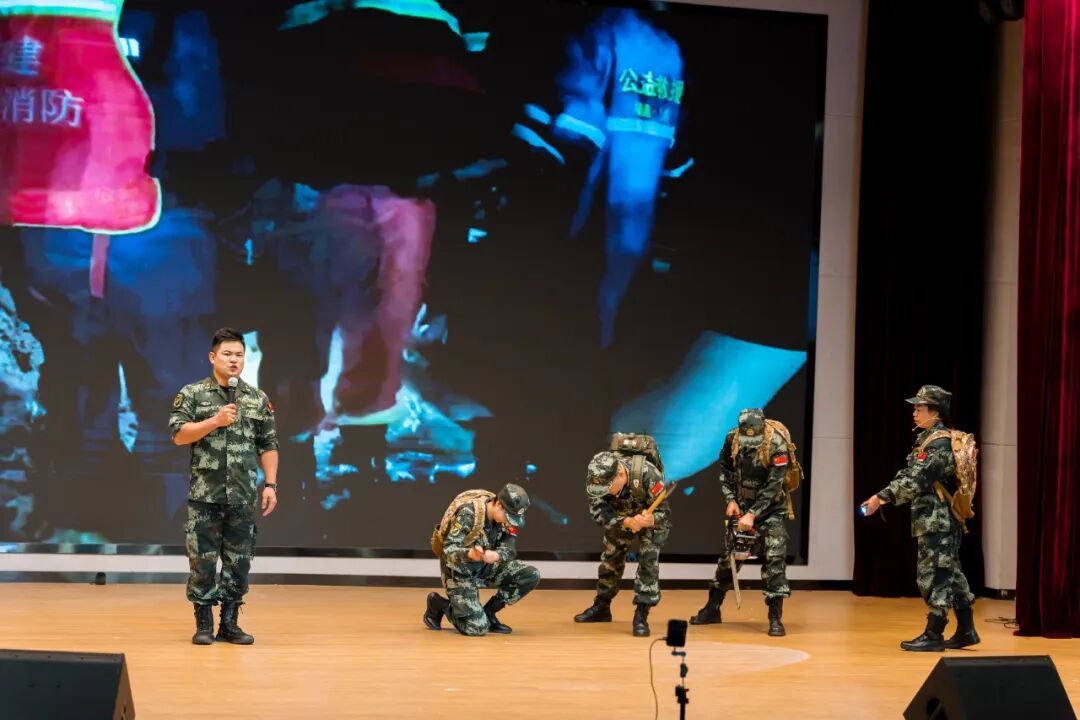 全國(guó)“最美退役軍人”、福建省“最美退役軍人”、福州市鼓樓區(qū)三坊七巷消防救援站副站長(zhǎng)張?zhí)焖餍v 宣講會(huì)上通過(guò)情景模擬,現(xiàn)場(chǎng)還原客運(yùn)服務(wù)場(chǎng)景,生動(dòng)展現(xiàn)了中國(guó)鐵路南昌局集團(tuán)有限公司福州車(chē)站客運(yùn)車(chē)間助理工程師馬燕妮在平凡崗位上堅(jiān)守軍人本色、守護(hù)旅客出行安全的點(diǎn)滴事跡;再現(xiàn)龍巖上杭縣古田軍號(hào)公益救援突擊隊(duì)隊(duì)長(zhǎng)凌徵鵬和他的隊(duì)員們不畏艱險(xiǎn)、沖鋒在前,守護(hù)人民群眾生命財(cái)產(chǎn)安全的動(dòng)人畫(huà)面。