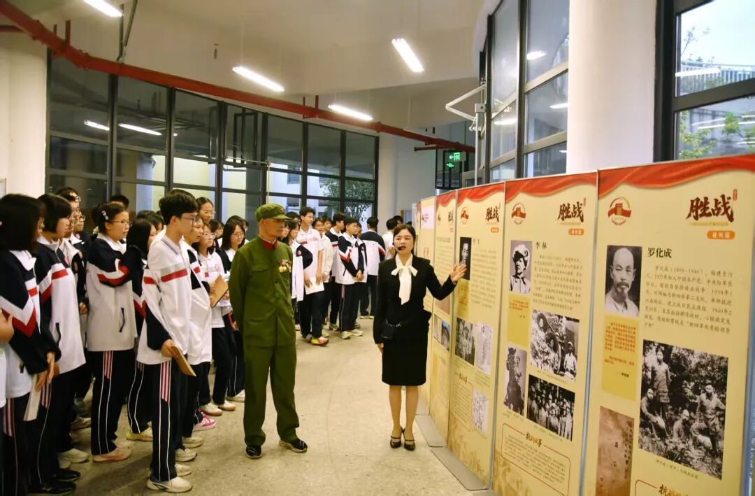 以巡展?fàn)I造沉浸式學(xué)習(xí)氛圍 活動(dòng)現(xiàn)場(chǎng),33塊記錄著抗戰(zhàn)英烈、愛(ài)國(guó)人士英勇事跡的“勝戰(zhàn)·2025—八閩抗戰(zhàn)英烈事跡巡展”展板依次排開(kāi),形成了一條生動(dòng)的“抗戰(zhàn)烽火歷史長(zhǎng)廊”。一幅幅烈士圖片、一段段抗戰(zhàn)故事,瞬間將師生們帶入那段山河破碎的歲月。講解員講述了每一位抗戰(zhàn)英烈和愛(ài)國(guó)華僑、愛(ài)國(guó)人士的抗戰(zhàn)壯舉,積極與學(xué)生開(kāi)展互動(dòng),讓偉大的抗戰(zhàn)精神在新時(shí)代少年的心中生根發(fā)芽。