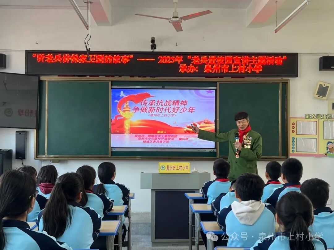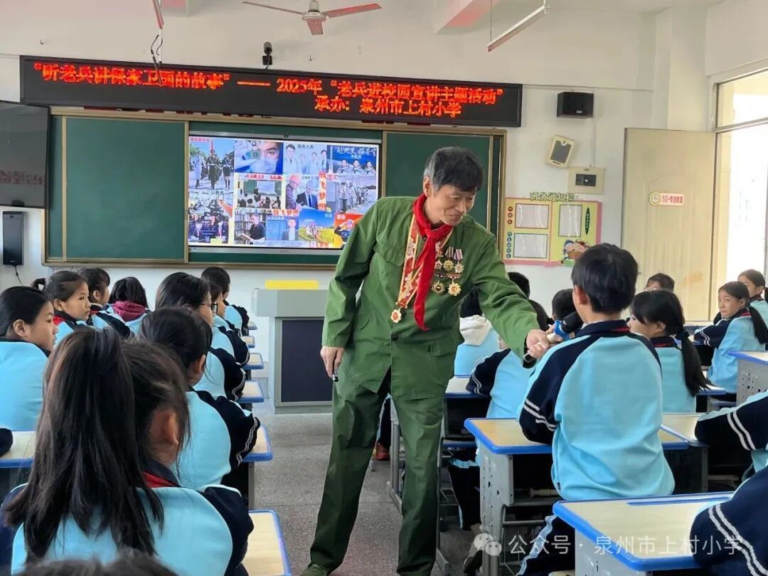 11月26日上午,一等戰(zhàn)功獲得者、“泉州市最美退役軍人”詹明德走進(jìn)泉州市上村小學(xué)開展主題宣講。此次活動(dòng)由共青團(tuán)鯉城區(qū)委員會、鯉城區(qū)教育局、鯉城區(qū)退役軍人事務(wù)局主辦,泉州市上村小學(xué)承辦。少先隊(duì)員們與輔導(dǎo)員懷著無比崇敬的心情歡聚一堂,共同聆聽?wèi)?zhàn)斗英雄的傳奇故事,感受退役軍人的初心使命?,F(xiàn)場響起的陣陣熱烈掌聲,是大家對他最誠摯的問候與最崇高的敬意。 活動(dòng)現(xiàn)場,輔導(dǎo)員帶領(lǐng)大家共同回顧了一等戰(zhàn)功獲得者、“泉州市最美退役軍人”詹明德那部書寫著忠誠與擔(dān)當(dāng)?shù)膲邀惾松?。他始終堅(jiān)守軍人本色,恪盡職守、銳意進(jìn)取,先后斬獲省級勞模、市精神文明建設(shè)先進(jìn)工作者、市見義勇為先進(jìn)個(gè)人、市五一勞動(dòng)獎(jiǎng)?wù)?、區(qū)優(yōu)秀共產(chǎn)黨員等省、市、區(qū)各級榮譽(yù)近三十項(xiàng),用實(shí)際行動(dòng)踐行了“為人民服務(wù)”的錚錚誓言。