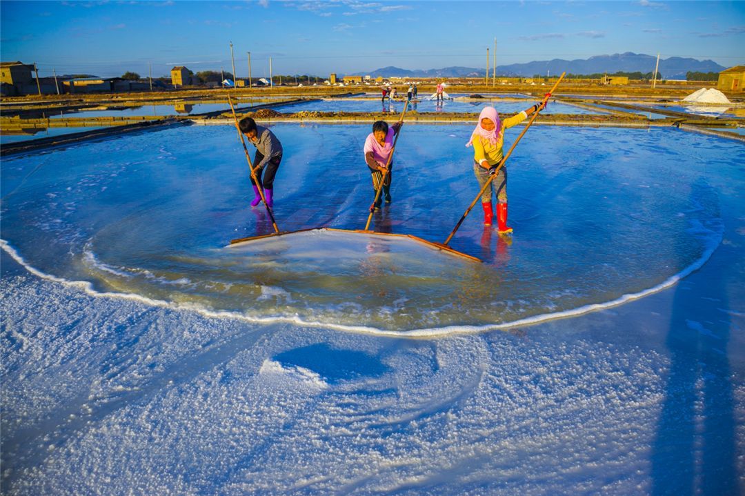這完全依靠大自然的陽(yáng)光、風(fēng)而成, 純天然潔白、松脆,不易板結(jié), 無(wú)需添加任何抗結(jié)劑。 得天獨(dú)厚的地理環(huán)境, 匠心獨(dú)運(yùn)的千年工藝, 使福建海鹽具有可直接食用的品質(zhì)特點(diǎn)。 是中國(guó)海鹽文化的代表, 近年,這項(xiàng)傳統(tǒng)曬制技藝, 亦入選福建省級(jí)非物質(zhì)文化遺產(chǎn)代表性項(xiàng)目名錄。