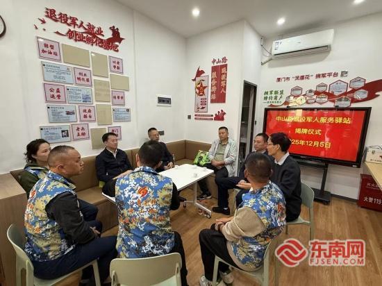 驛站退役軍人志愿者與揭牌嘉賓暢談(東南網(wǎng)記者 李霖 攝) 12月5日,廈門市中山路退役軍人服務(wù)驛站正式揭牌。這坐落于百年商業(yè)老街的“退役軍人之家”,將傳承中山路悠久的擁軍傳統(tǒng),以創(chuàng)新模式為退役軍人提供全方位服務(wù),成為凝聚軍民深情、助力退役軍人發(fā)展的嶄新平臺。 廈門中山路是一條承載閩南文化、商貿(mào)活躍的百年老街,也是一條流淌著紅色基因的“擁軍示范街區(qū)”。一直以來,這里就與軍人結(jié)下深厚淵源:抗戰(zhàn)時(shí)期,商戶們自發(fā)募捐物資支援前線;解放后,持續(xù)開展擁軍優(yōu)屬活動;改革開放以來,更推出多項(xiàng)退役軍人優(yōu)惠政策。百年間,中山路見證了“軍愛民、民擁軍”的深情厚誼,為驛站的建立奠定了堅(jiān)實(shí)的歷史與群眾基礎(chǔ)。 新建成的驛站創(chuàng)新采用“理事會領(lǐng)導(dǎo)下的公益志愿服務(wù)”模式,由理事會統(tǒng)籌規(guī)劃驛站發(fā)展方向、監(jiān)督服務(wù)質(zhì)量、鏈接優(yōu)勢資源,確保驛站運(yùn)營始終貼合退役軍人需求、契合市、區(qū)、街道、社區(qū)發(fā)展實(shí)際,實(shí)現(xiàn)公益志愿服務(wù)屬性與可持續(xù)運(yùn)營的有機(jī)統(tǒng)一。 廈門市思明區(qū)中華街道民生服務(wù)辦負(fù)責(zé)人蘇江圳介紹,驛站依托廈門市“鳳凰花”擁軍平臺,已整合中山路街區(qū)超過100家商戶,為軍人軍屬和退役軍人提供優(yōu)待優(yōu)惠,“營造濃厚擁軍氛圍,讓全國退役軍人來到廈門都能感受到這座‘全國雙擁模范城’的溫度。”更值得期待的是,驛站正積極籌劃設(shè)立“擁軍基金”,匯聚商戶、愛心人士及優(yōu)秀退役軍人代表的捐贈,專項(xiàng)用于支持退役軍人就業(yè)創(chuàng)業(yè)及困難幫扶,切實(shí)體現(xiàn)社會尊崇。 這一務(wù)實(shí)舉措激發(fā)了退役軍人的參與熱情。蘇江圳表示,許多退役軍人深受感動,紛紛以無償志愿形式積極參與驛站運(yùn)營管理,自主排班值班,投身各項(xiàng)志愿服務(wù),形成了“服務(wù)退役軍人,退役軍人參與服務(wù)”的良性循環(huán)。 驛站內(nèi)設(shè)三大功能區(qū):多媒體服務(wù)區(qū)運(yùn)用數(shù)字化手段提供政策宣傳、事跡學(xué)習(xí)與互動體驗(yàn);就業(yè)創(chuàng)業(yè)孵化區(qū)依托街區(qū)商業(yè)資源,為退役軍人提供從辦公空間、創(chuàng)業(yè)指導(dǎo)到崗位對接的全鏈條支持;軍旅文創(chuàng)展示區(qū)則集中展示、銷售融合軍旅文化與閩南特色的產(chǎn)品,助力退役軍人創(chuàng)業(yè)成果轉(zhuǎn)化。 記者了解到,就在中山路驛站揭牌前夕,廈門市擁軍“朋友圈”再次擴(kuò)容。12月4日,翔安區(qū)兩家酒店獲頒成為擁軍聯(lián)盟單位。至此,廈門全市已建成129家特色擁軍驛站(站點(diǎn)),形成了一張覆蓋更廣、服務(wù)更優(yōu)的社會化擁軍網(wǎng)絡(luò)。