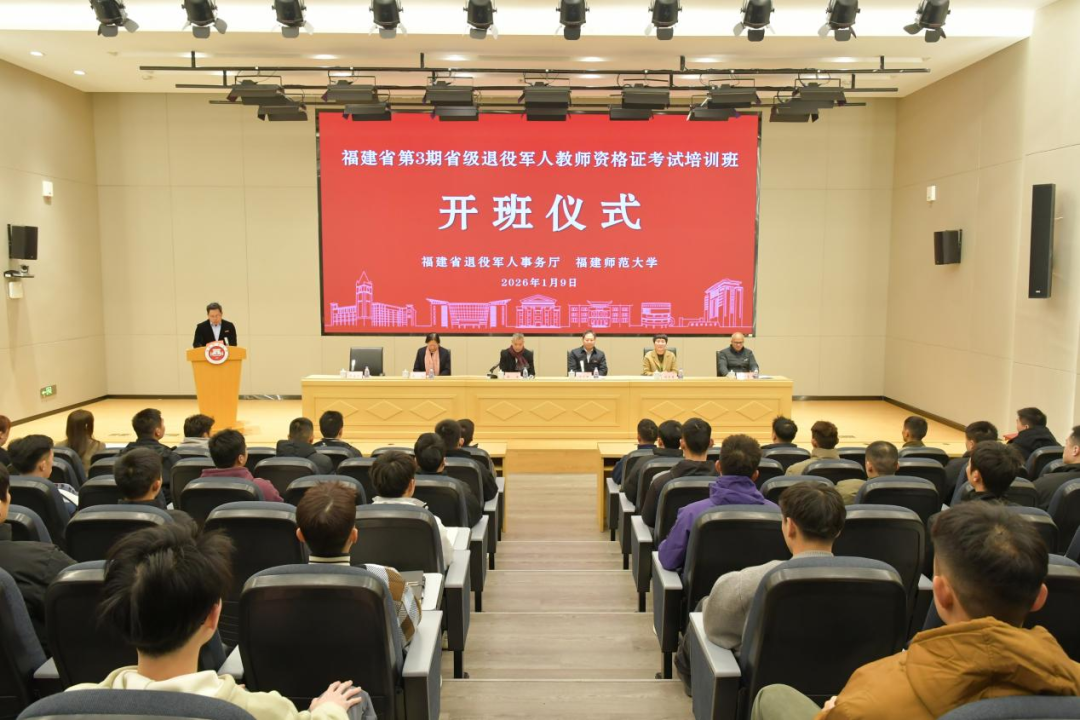 1月9日上午,由省退役軍人事務廳和福建師范大學聯(lián)合舉辦的第3期省級退役軍人教師資格證考試培訓班,在師大倉山校區(qū)開班。46名省內自主就業(yè)退役士兵將進行19天的線下培訓,備考沖刺今年3月份的教師資格證考試。