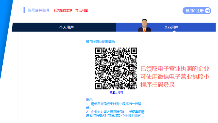 2.可選擇賬號登錄或電子營業(yè)執(zhí)照掃碼登錄。