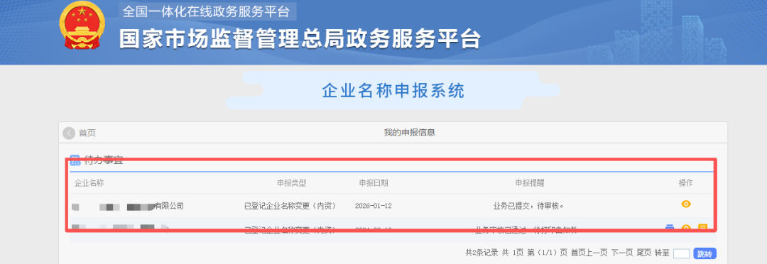 6.登錄企業(yè)名稱申報系統(tǒng),點擊“我的業(yè)務申請”可查看業(yè)務辦理情況。