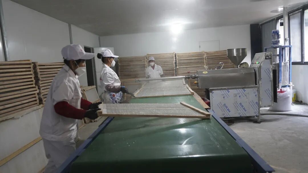 加工車間忙不停!純紅薯粉條熱銷省內(nèi)外 臨近春節(jié),將樂縣愛博瓜瓜農(nóng)業(yè)專業(yè)合作社的車間里一派繁忙景象。工人分工明確、機器高效運轉(zhuǎn),一筐筐新鮮紅薯經(jīng)打芡、漏粉、排粉、晾粉等多道工序,蛻變成晶瑩剔透、勁道爽滑的純紅薯粉條。 “自2025年10月啟動紅薯采收以來,我們用自有種植、無任何添加的紅薯做原料,日產(chǎn)量達(dá)1000余斤?!焙献魃缲?fù)責(zé)人石桃根介紹,生態(tài)種植環(huán)境培育出的紅薯品質(zhì)出眾,制成的粉條Q彈營養(yǎng),廣受市場青睞,產(chǎn)品已發(fā)往莆田、福州及河南等省外地區(qū)。