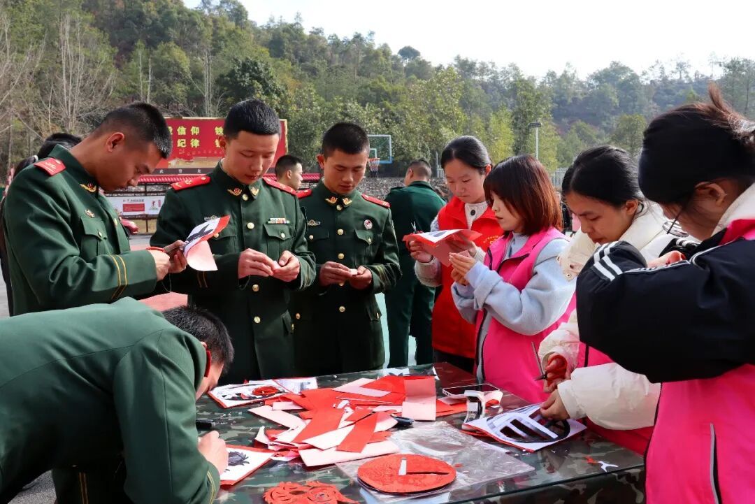 新春將至,年味漸濃。為弘揚(yáng)擁軍優(yōu)屬優(yōu)良傳統(tǒng),密切軍政軍民關(guān)系,1月29日上午,龍巖市長(zhǎng)汀縣退役軍人事務(wù)局聯(lián)合縣總工會(huì)、縣文聯(lián)、團(tuán)縣委、縣婦聯(lián),攜手書法協(xié)會(huì)走進(jìn)武警長(zhǎng)汀中隊(duì),開展“書香翰墨進(jìn)軍營(yíng) 雙擁情深譜新篇”書法剪紙擁軍活動(dòng),為駐汀官兵送上新春祝福。