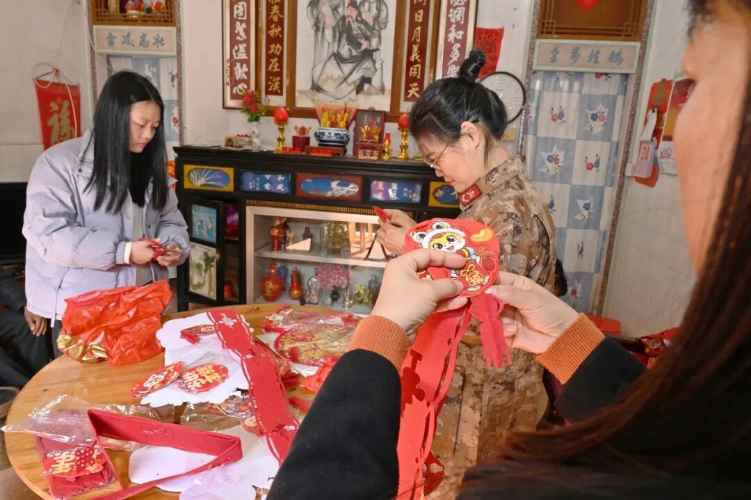 走訪人員一進(jìn)門,便紛紛行動(dòng)起來(lái):有的懸掛“我陪軍屬過大年”橫幅,有的更換破舊“光榮之家”牌匾,有的張貼紅彤彤的福字與春聯(lián),院中還掛起了象征團(tuán)圓的小紅燈籠。沒多久,小院被點(diǎn)綴得喜氣盈盈。