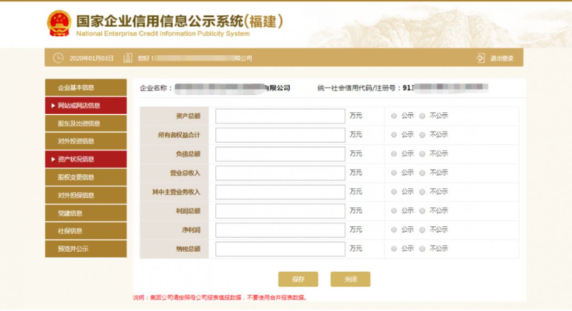 第十步:填寫資產(chǎn)狀況信息。點擊左邊“資產(chǎn)狀況信息”填寫后保存。企業(yè)資產(chǎn)狀況信息,應當是企業(yè)年度資產(chǎn)負債表和損益表(利潤表)中的期末數(shù);納稅總額為企業(yè)全年實繳各類稅金的總和。