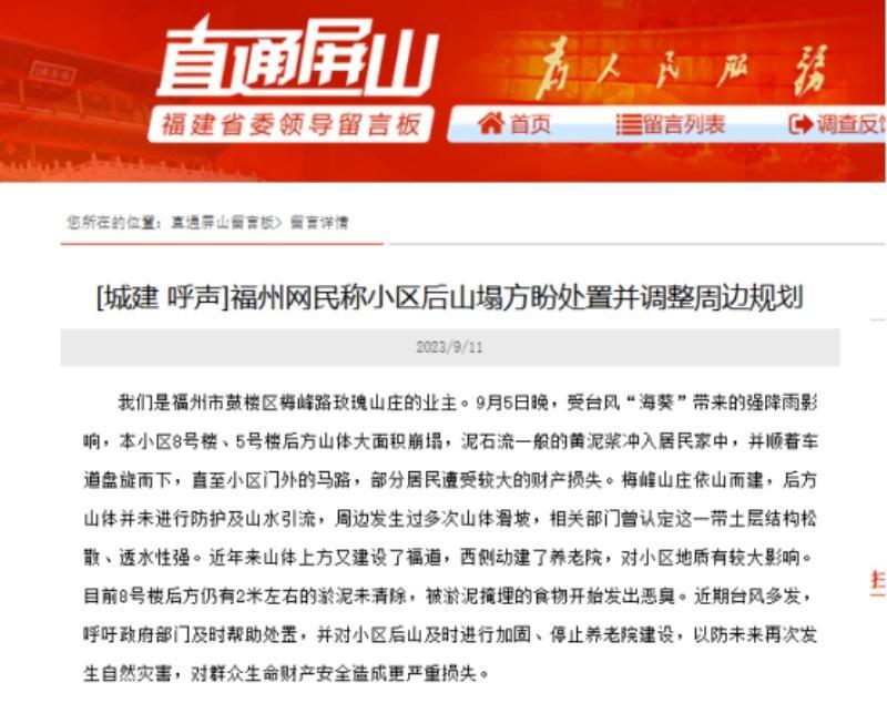 東南網10月15日訊(本網記者 馮旭 王晨麗 文/圖)“那一年的情形我們至今還心有余悸,現(xiàn)在就安心多了!”經過臺風扎堆的季節(jié),曾遭遇山體塌方直襲家中的福州玫瑰山莊小區(qū)居民安然無恙。得益于相關部門的積極處置,曾令他們惶惶不安的災害點已得到系統(tǒng)修復與加固,為居民們心里增添了一份踏實和安寧。 2023年,臺風“杜蘇芮”和“??睅韽娊涤辏V荻嗟匕l(fā)生積水、內澇、塌方等次生災害。福州玫瑰山莊小區(qū)緊鄰福道,依山而建,山體塌方帶來的黃泥漿如洪水般涌入住戶家中,順著小區(qū)車道流向馬路,造成居民較大財產損失。雖未發(fā)生人員傷亡,但居民們深感后怕,有人從此搬離了小區(qū)。部分居民通過《直通屏山 福建省委領導留言板》反映情況,提出小區(qū)后方山體無加固、無山水引流,土層結構松散、透水性強等地質情況,呼吁省委領導及相關部門重視并及時處置,對小區(qū)后方山體進行加固,以免小區(qū)居民遭受更大生命財產損失。